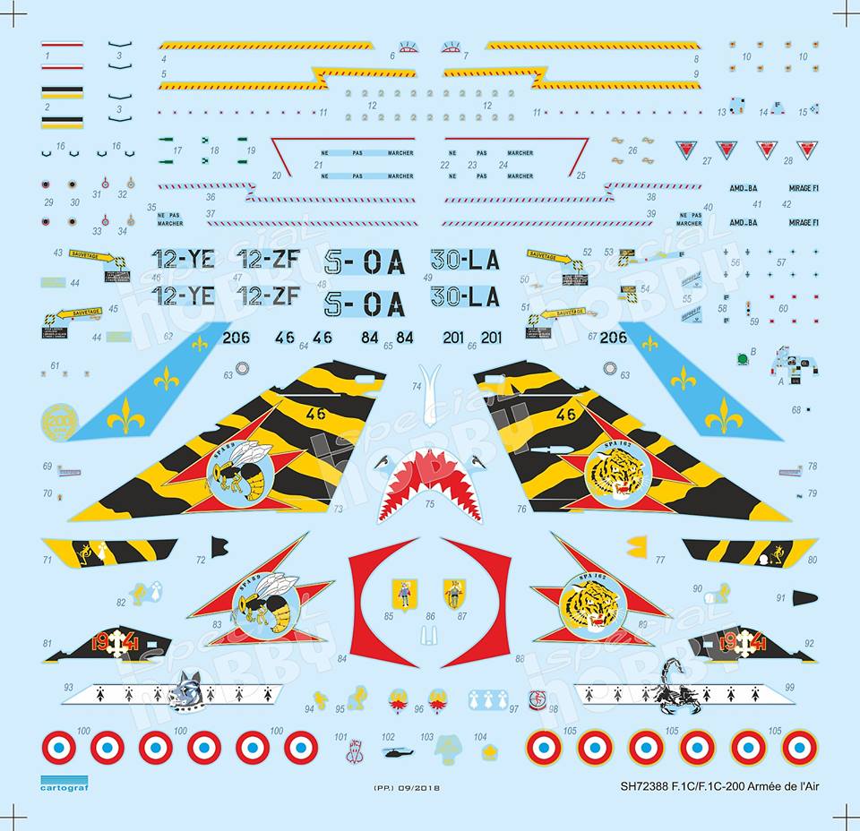 Decals for new kits - 1/72 SH72388 Mirage F.1C/C-200 Armée de l`Air.   Decals will be printed by Cartograf.