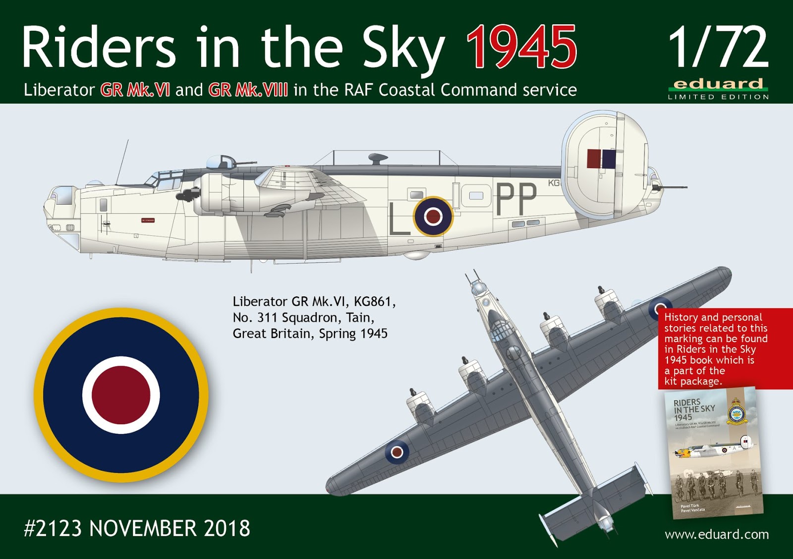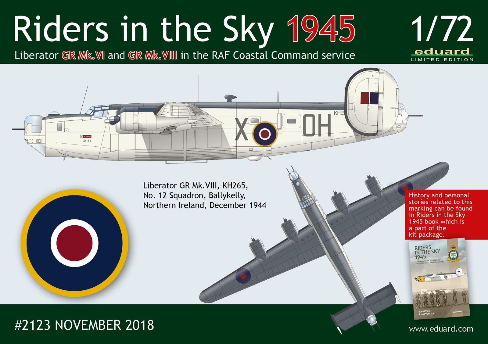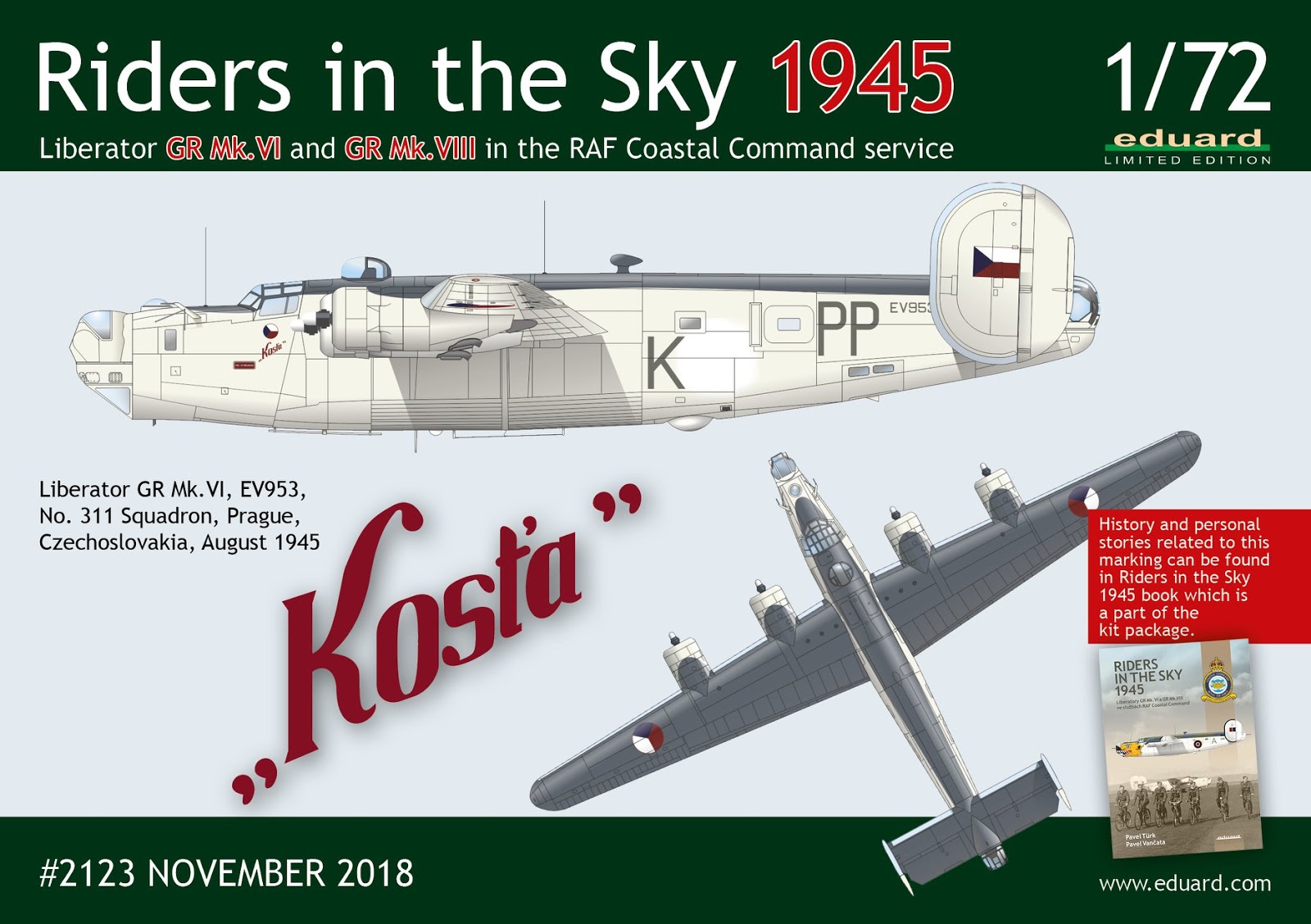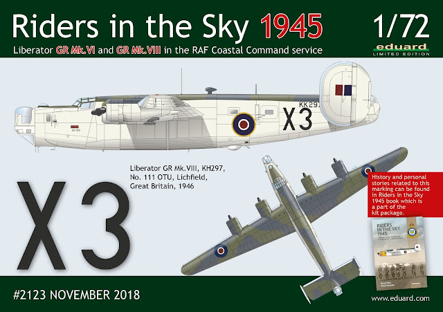 The kit connects to the Riders in the Sky 1944 Limited Edition kit (March 2018), which focused on Liberators GR Mk.III and GR Mk.V versions of Coastal Command. This first Limited Edition kit also contains the publication by the same authors. This is the first part subtitled „1944“ . The current publication ‘The Riders in the Sky 1945’, as well as the kit itself, are a loose continuation.